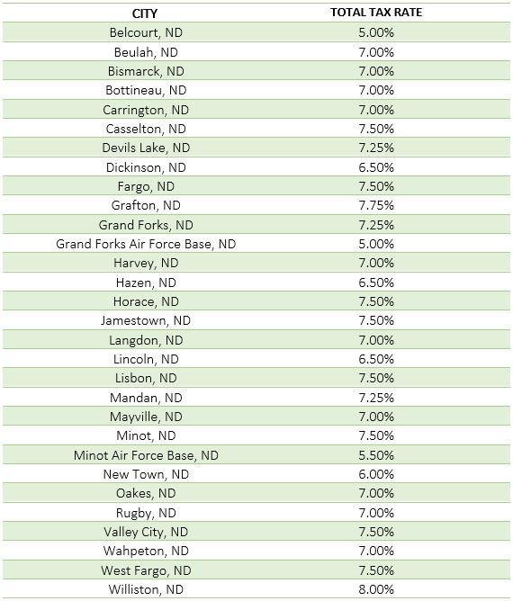 In addition to the North Dakota sales tax rate there may be one or more local sales taxes and one. The businesss primary location. You can read about North.